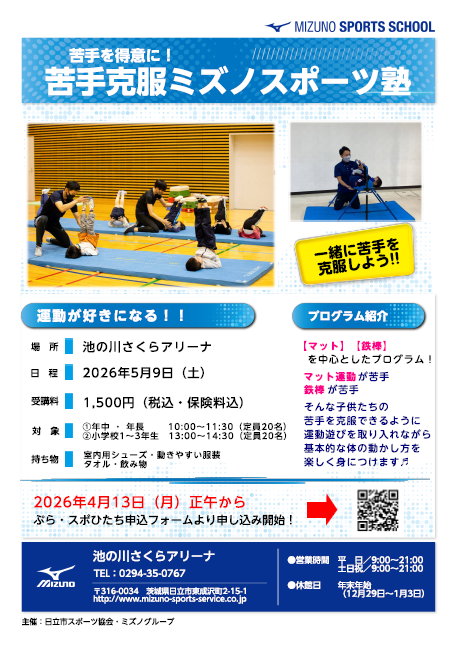 5月9日(土)『苦手克服ミズノスポーツ塾』参加者募集中!